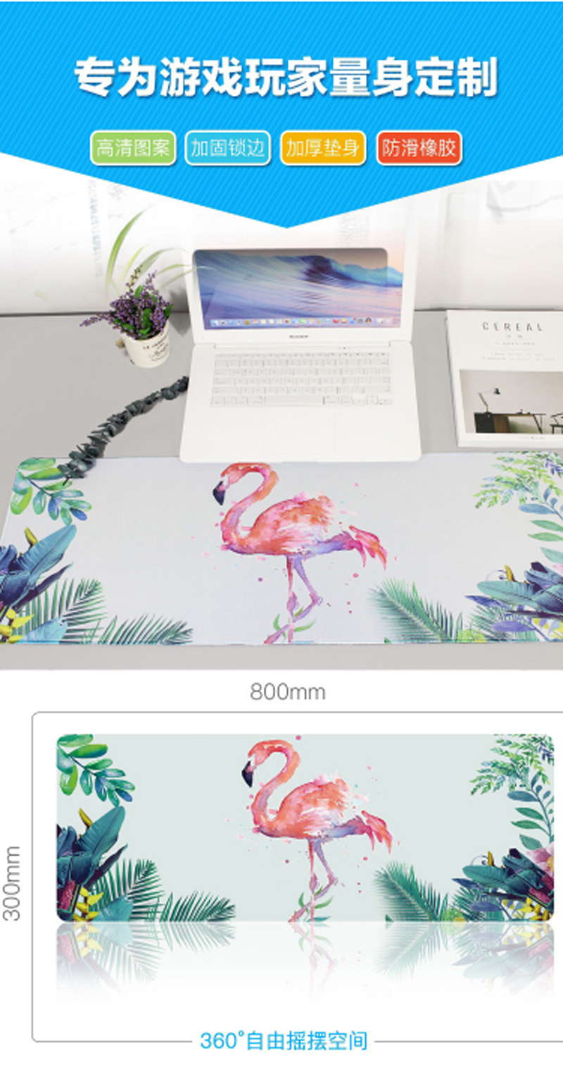 ☆灵蛇 P520 超大号加厚 鼠标垫 火烈鸟 800*300MM