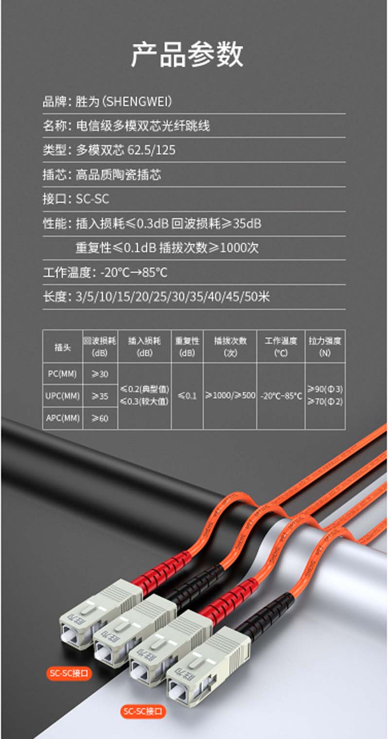 商品名称:☆胜为 SHENGWEI FMC-201 电信级光纤跳线 SC-SC多模双芯 收发器尾纤 3米