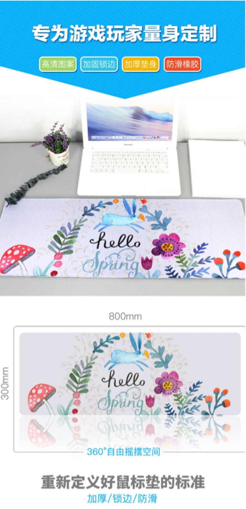 ☆灵蛇 P510 游戏鼠标垫 超大号 加厚 电脑桌垫 精密包边 底部防滑 办公游戏皆宜 花园兔