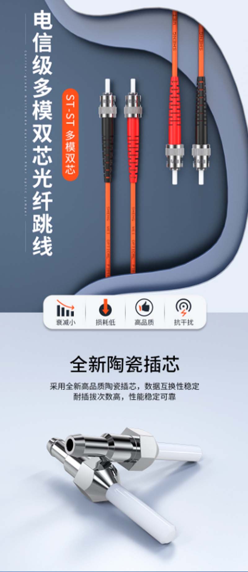 商品名称:☆胜为 SHENGWEI FMC-202 电信级光纤跳线 ST-ST多模双芯 收发器尾纤 3米