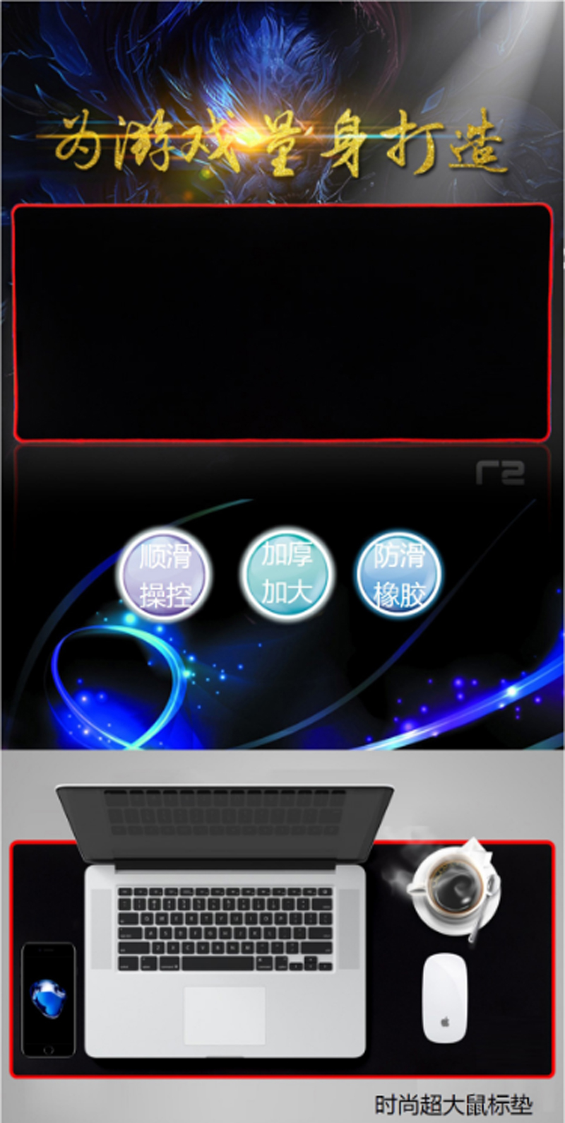 商品名称:☆灵蛇 P16 游戏鼠标垫 超大号加厚电脑桌垫 4MM加厚桌垫 精密包边 底部防滑 办公游戏皆宜 黑色