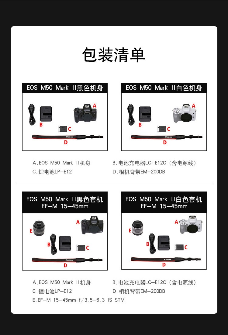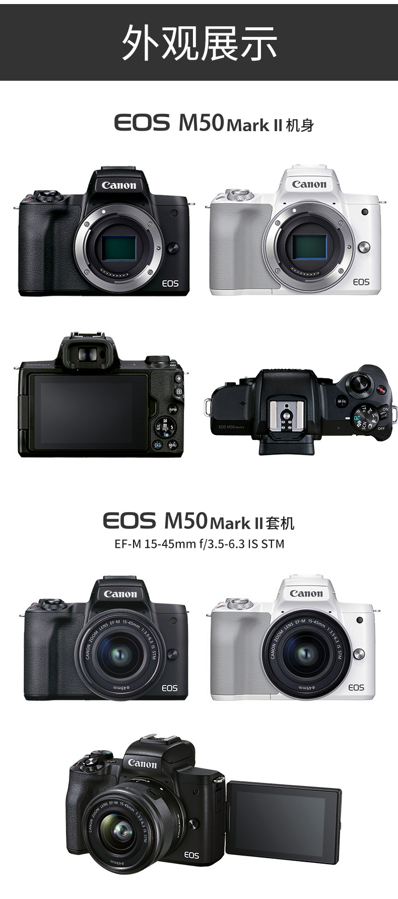 商品名称:☆佳能(CANON) EOS M50 (15-45MM) 单电/微单相机 黑色