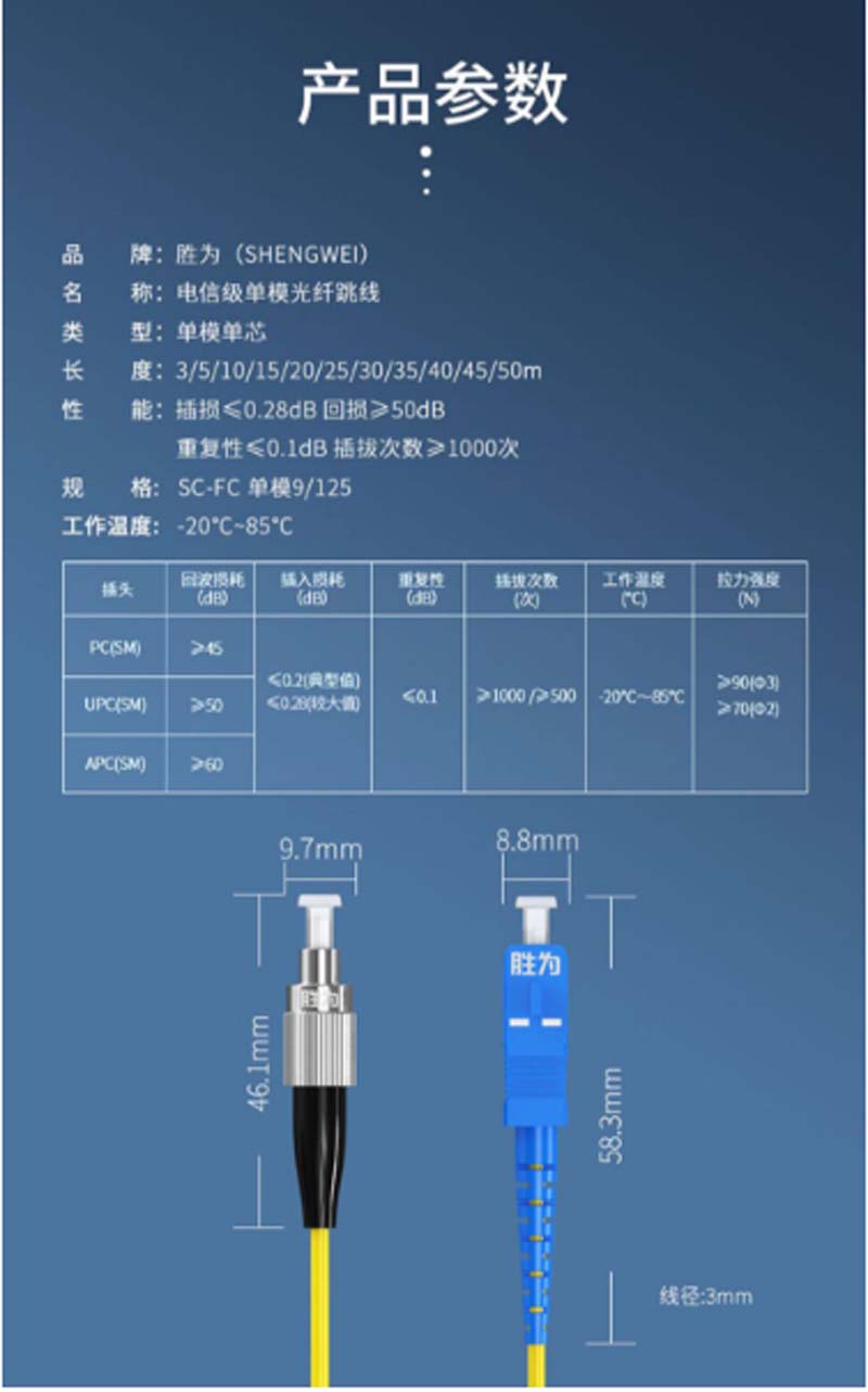 商品名称:☆胜为 SHENGWEI FSC-102 电信级光纤跳线 SC-FC单模单芯 收发器尾纤 3米