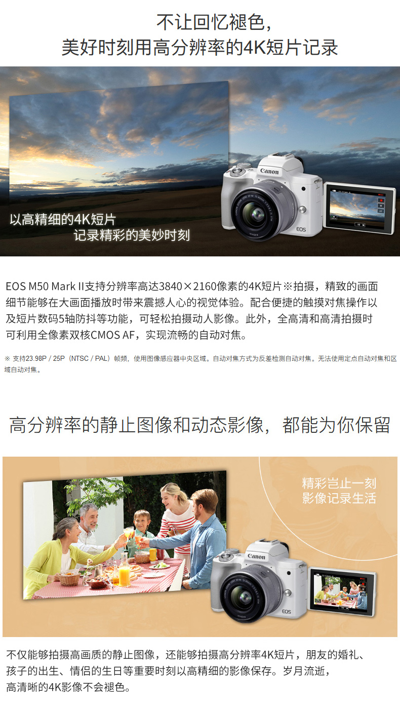 商品名称:☆佳能(CANON) EOS M50 (18-150MM) 单电/微单相机 白色