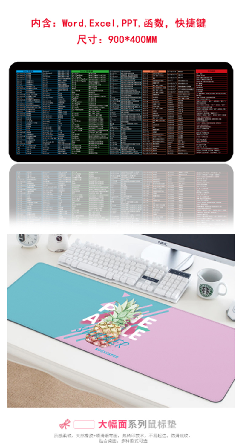 商品名称:☆玲魅 鼠标垫 大号 900×400MM(WORD+EXCEL+PPT+函数快捷键) 黑色