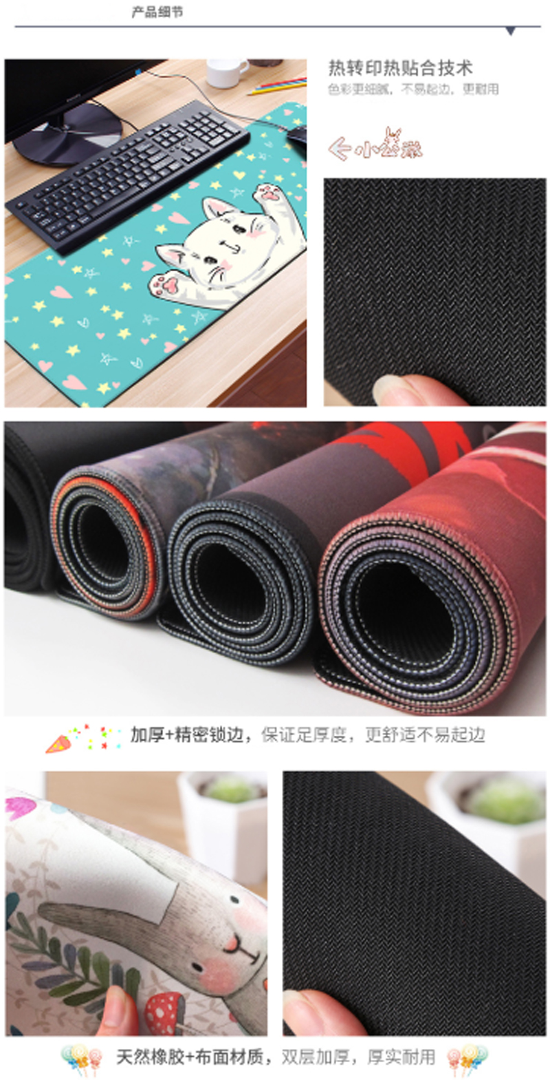 国产 鼠标垫大号带锁边可爱动漫加厚电脑垫办公桌垫学生键盘胶垫包边