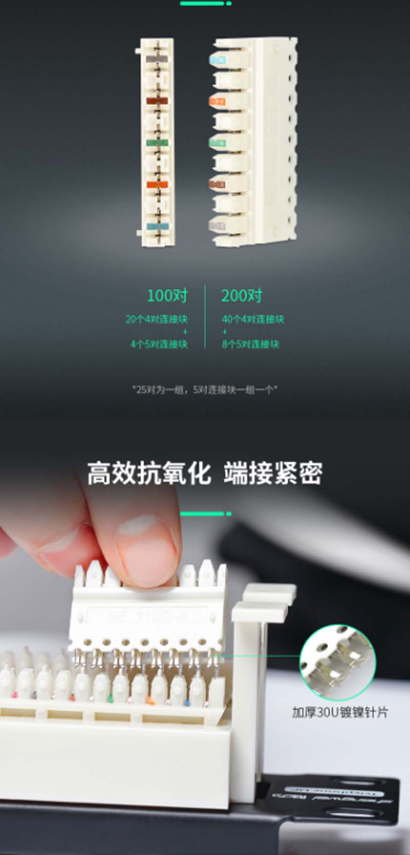 ☆胜为 SHENGWEI TDF-100 工程级110语音配线架100对 1U机架式高端镀金电话配线架 110配线架跳线架