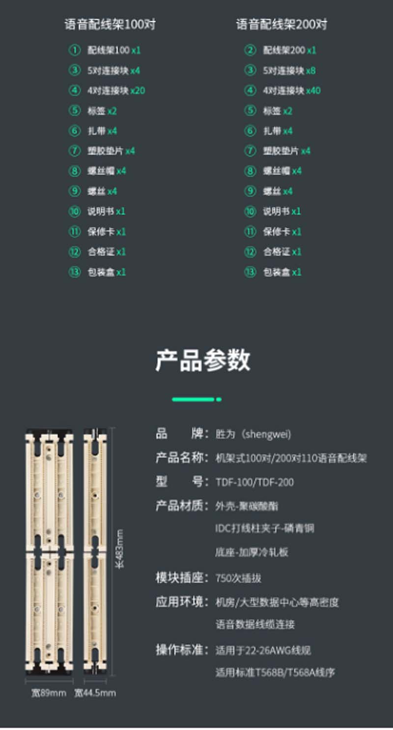 商品名称:☆胜为 SHENGWEI TDF-100 工程级110语音配线架100对 1U机架式高端镀金电话配线架 110配线架跳线架