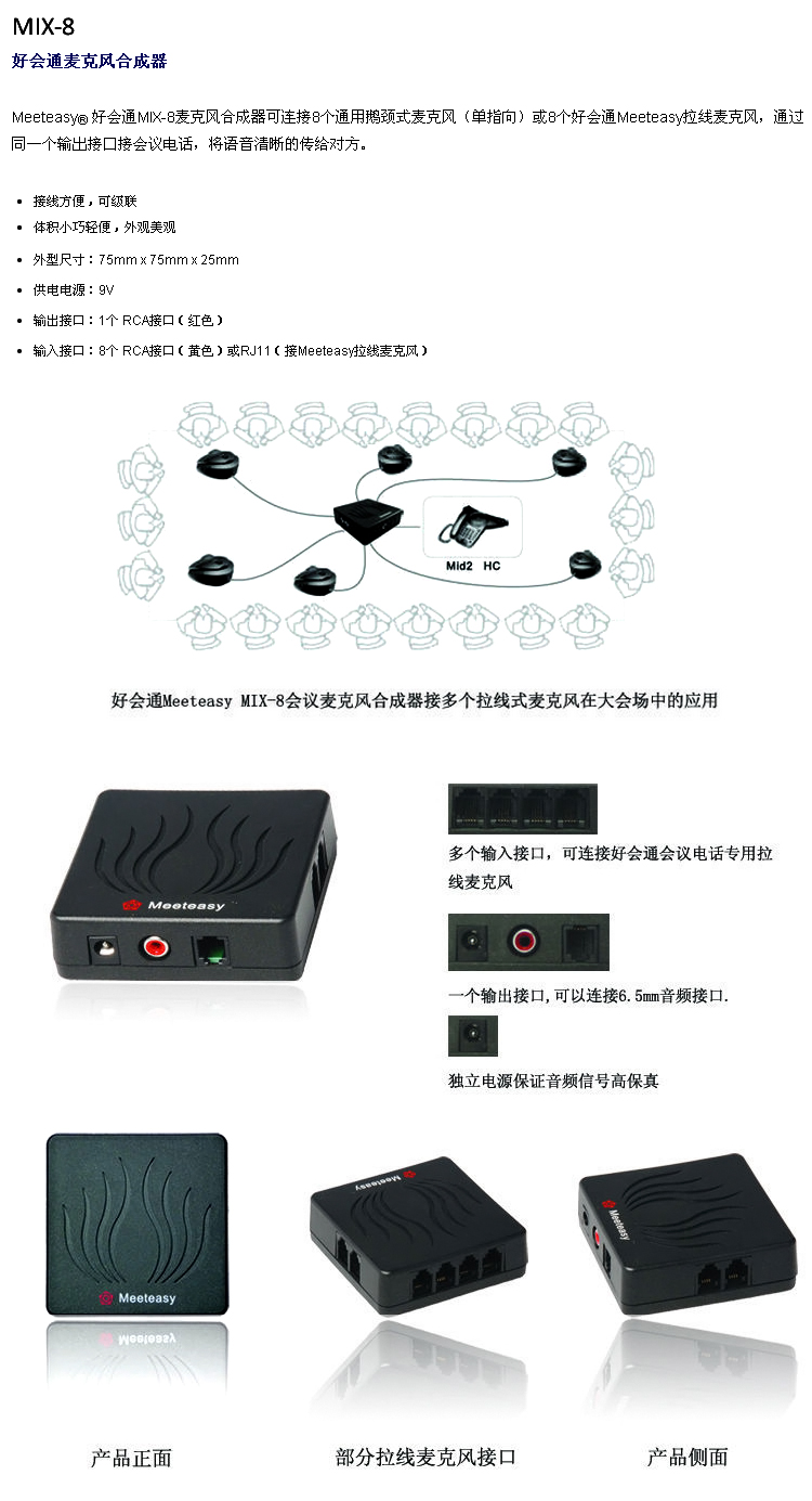 商品名称:☆好会通 MEETEASY MIX-8 8口 全向拉线麦克风合成器