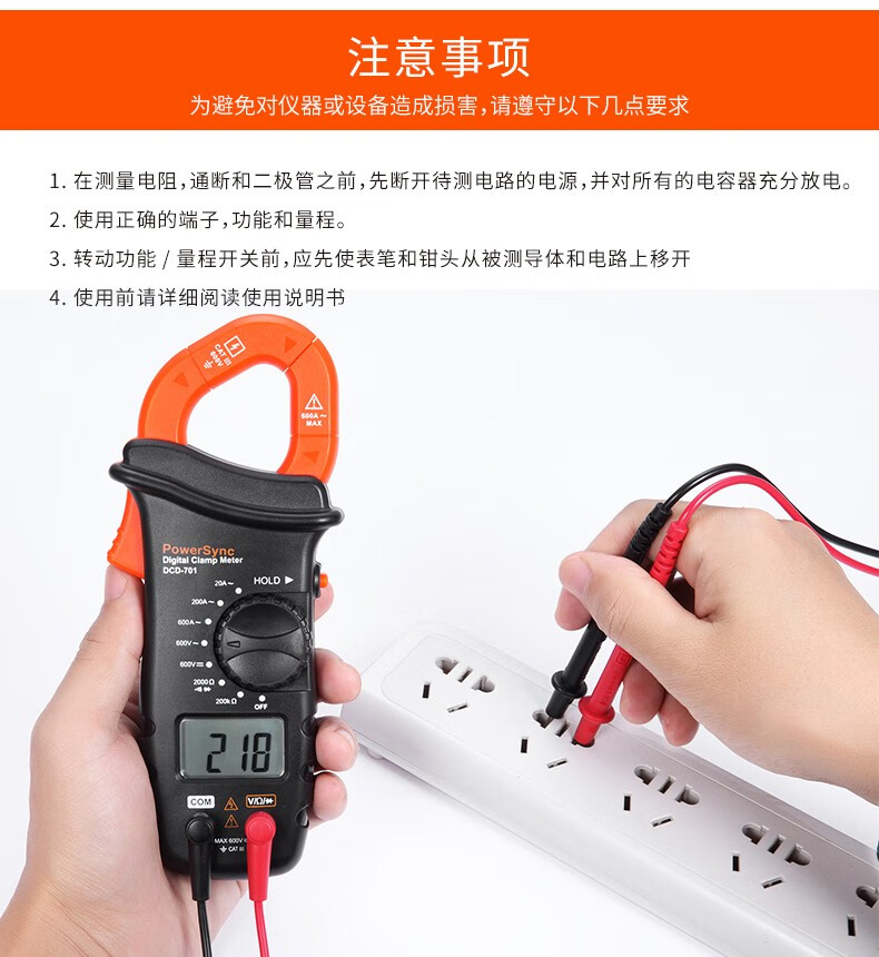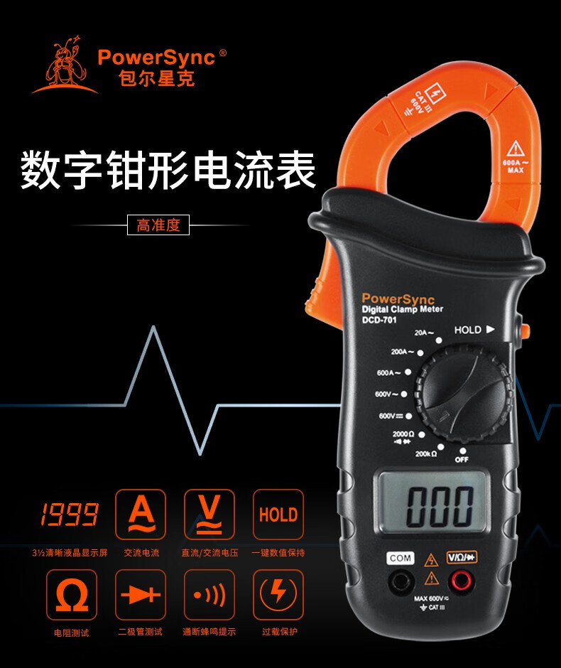 ☆包尔星克 POWERSYNC DCD-701 数字钳形电流表 万用表 185×80×37MM