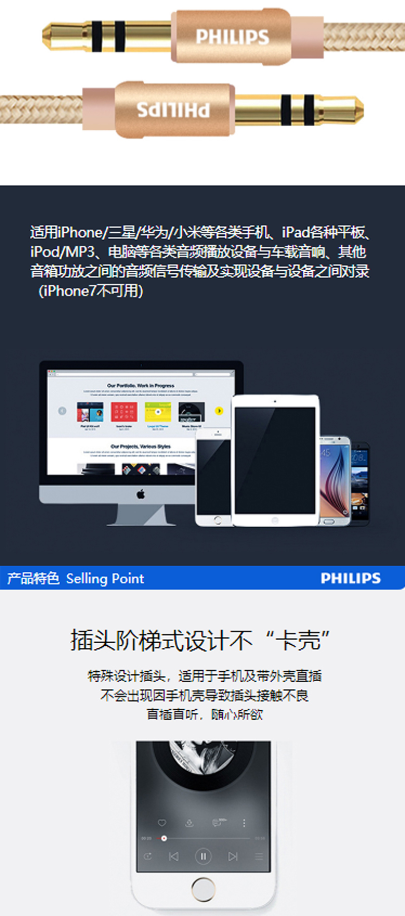 商品名称:☆飞利浦 PHILIPS SWA5011A/93 3.5MM音频线 1米 适用于(手机/平板/功放/MP3/DVD)