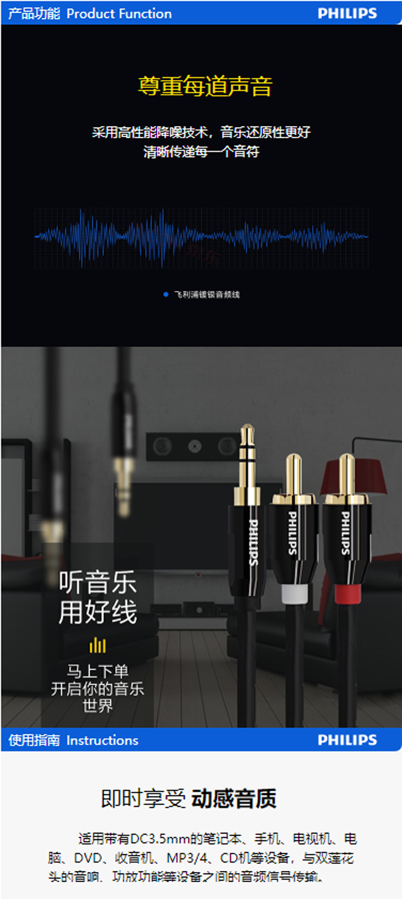 商品名称:☆飞利浦 PHILIPS SWR2120C 3.5MM转双莲花 音频线一分二 2RCA公对公连接线 手机电脑音响转接线 2米