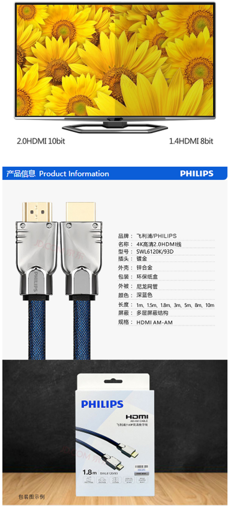 商品名称:☆飞利浦 PHILIPS SWL6118D/93 HDMI线2.0版 4K 标准线2米