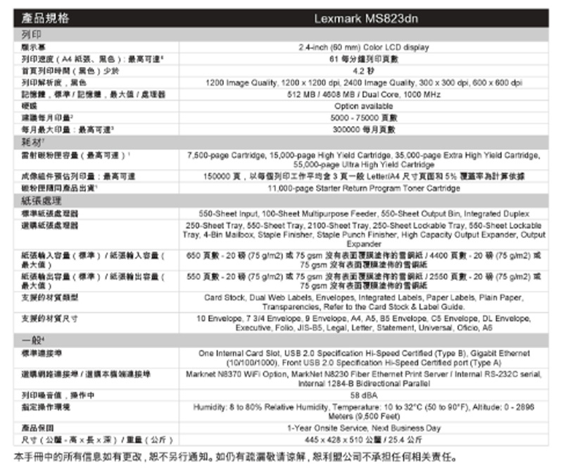 商品名称:☆利盟(LEXMARK) MS823DN 激光打印机 (1年)