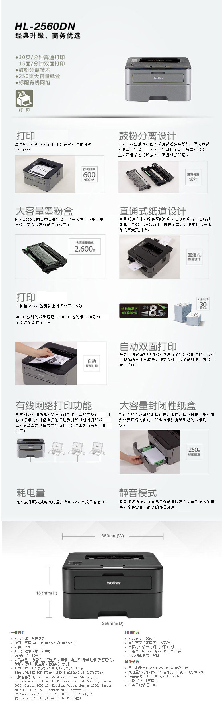 商品名称:☆兄弟(BROTHER) 2560DN 激光打印机 (1年)