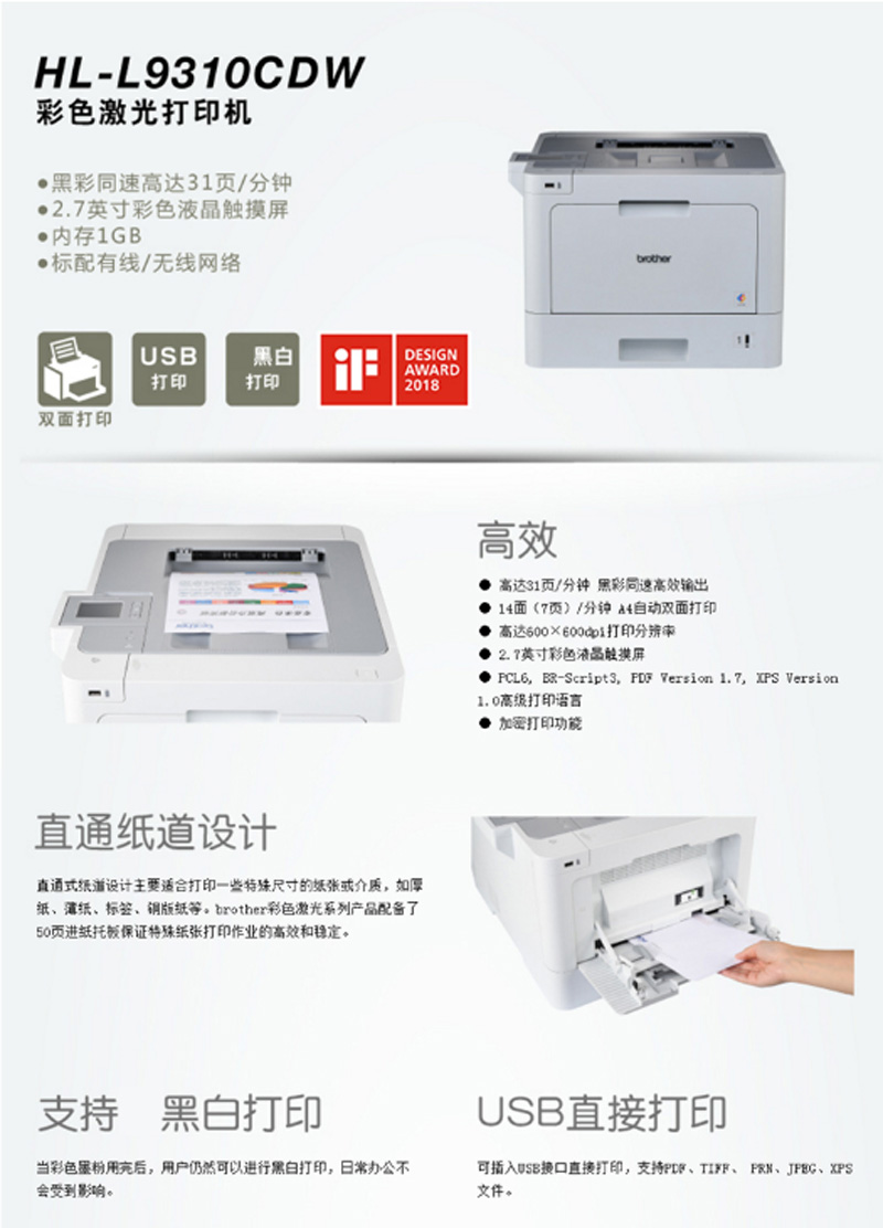 商品名称:☆兄弟(BROTHER) L9310CDW 激光打印机 (1年)