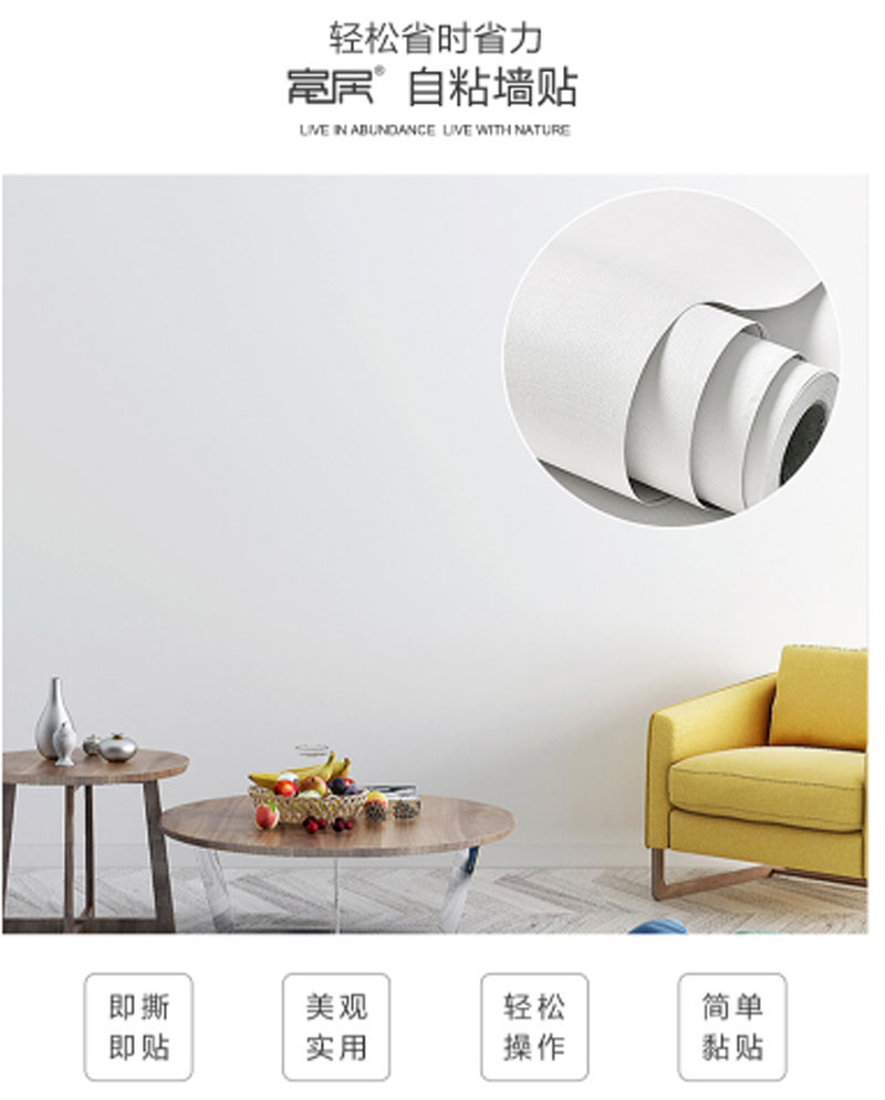 商品名称:富居 FOOJO 自粘墙纸壁纸 素色墙纸 0.61×5米 白色