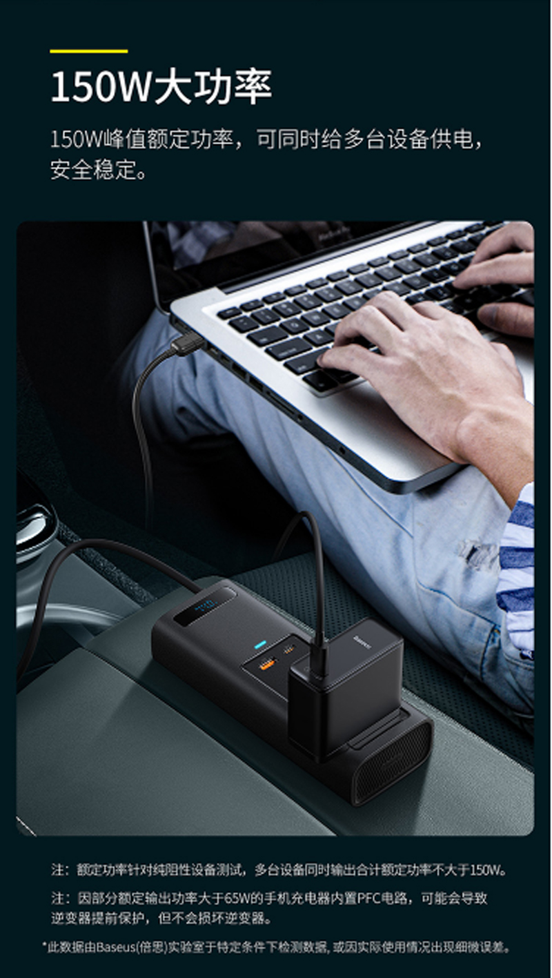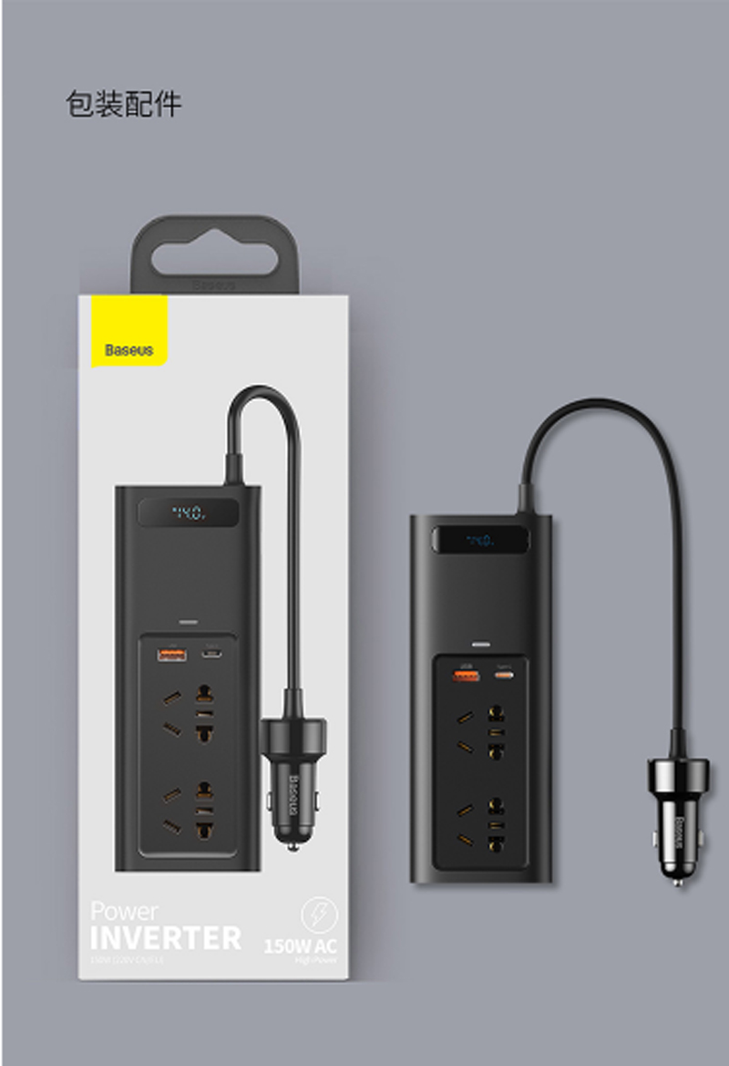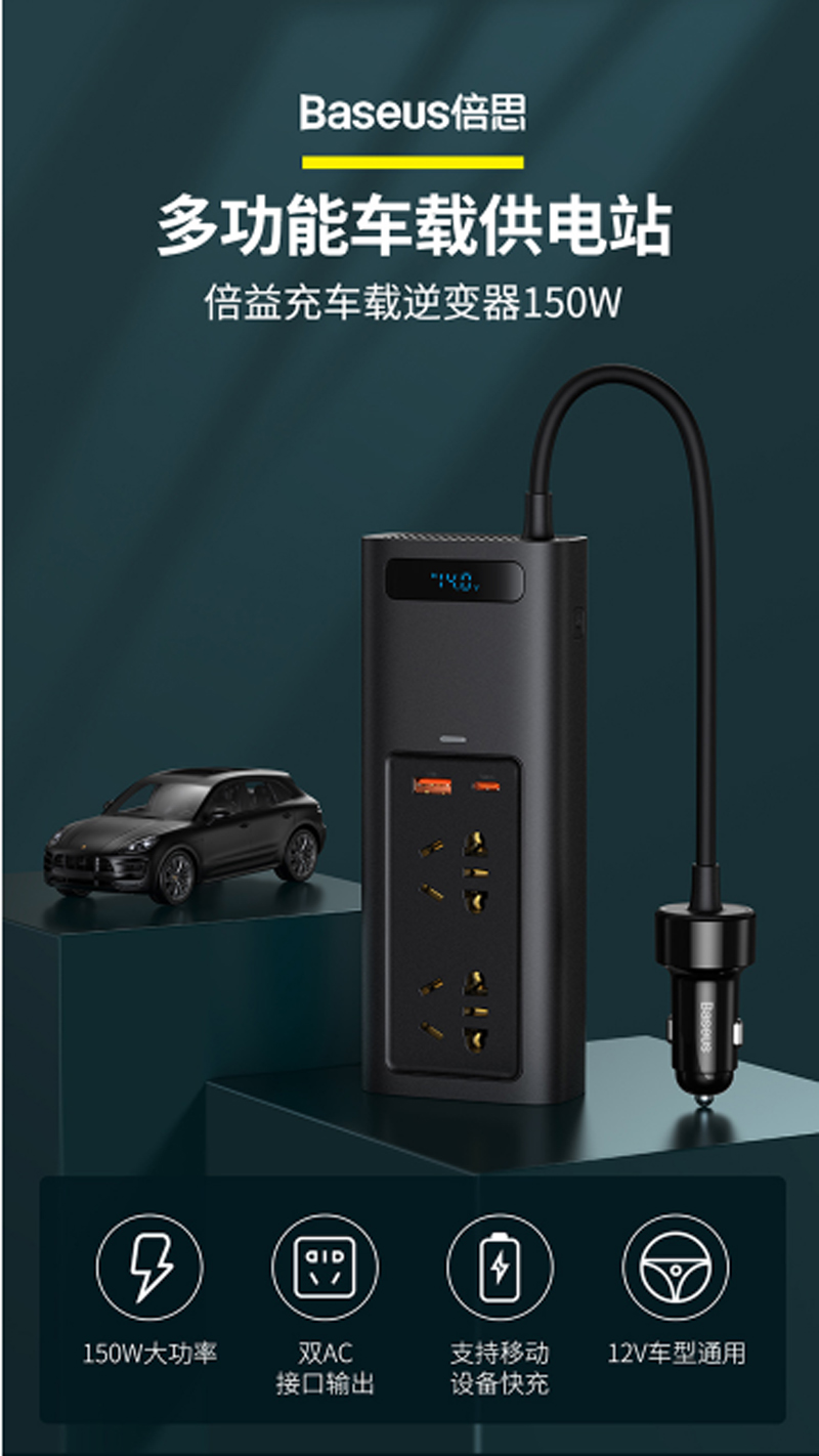 商品名称:倍思 车载逆变器12v转220v电源转换器插座 150W大功率汽车点烟器车载充电器手机快充车用插头