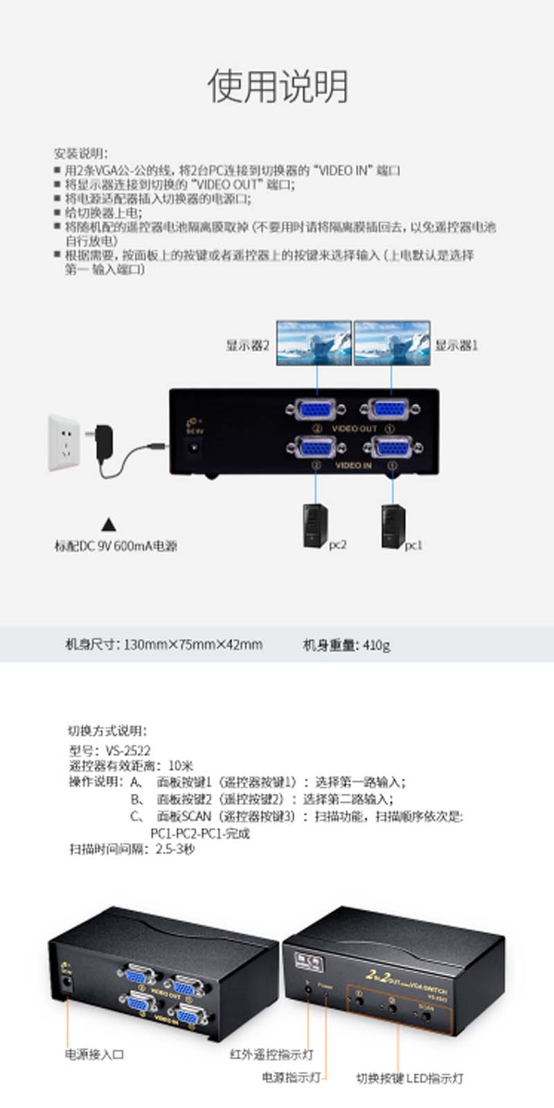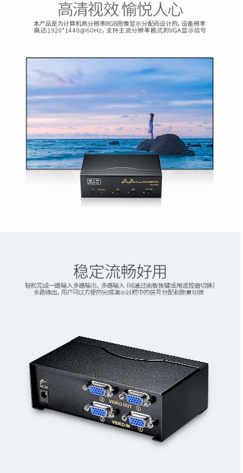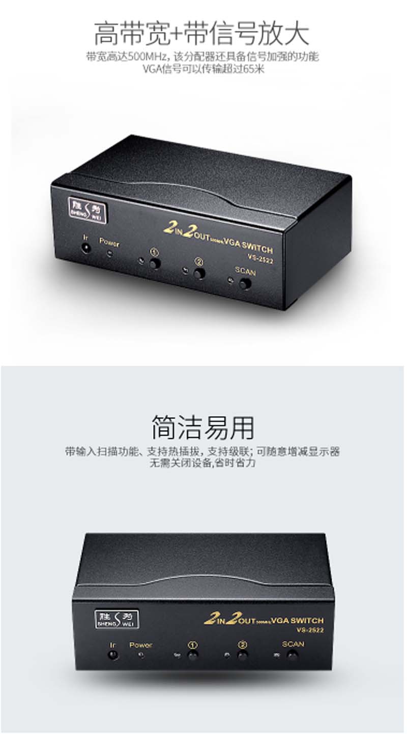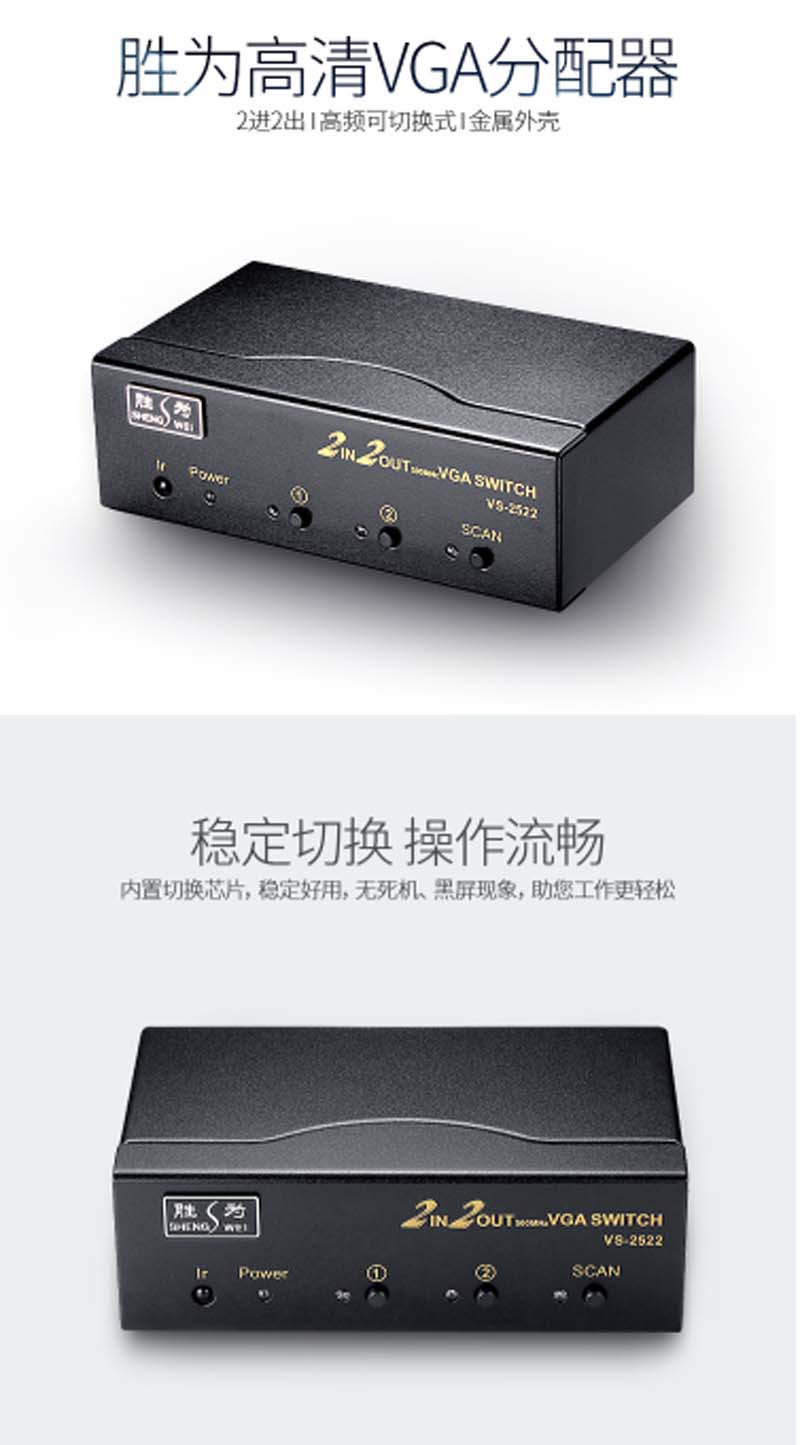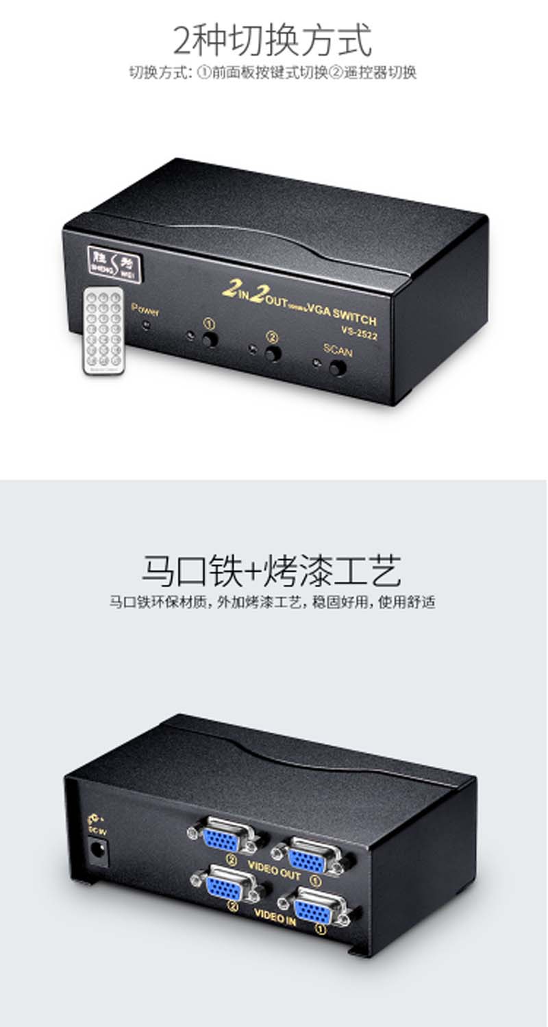 商品名称:☆胜为 SHENGWEI VS-2522 VGA二进二出切换器 带遥控 2进2出视频分配器共享器 高清显示器共享器