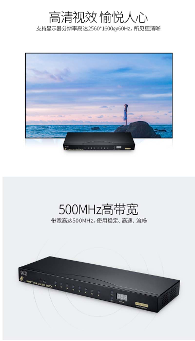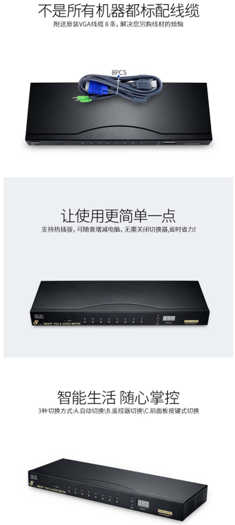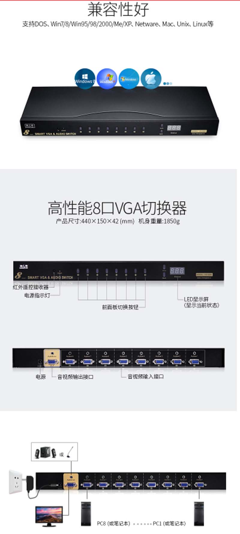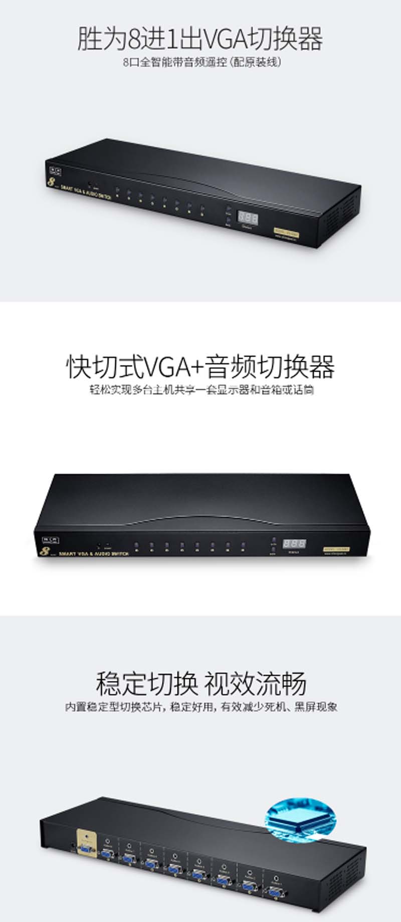 商品名称:☆胜为 SHENGWEI VS-5081 VGA切换器 机架式 8口带音频遥控 配线 全智能8进1出VGA共享器
