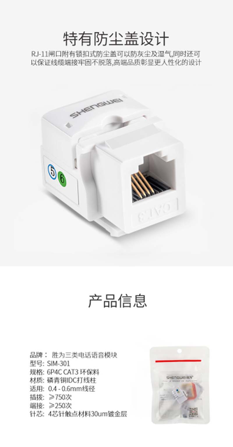 商品名称:☆胜为(SHENGWEI)SIM-301 三类电话模块 工程级镀金 语音模块 RJ11三类电话线模块