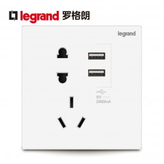 罗格朗 二三插五孔带USB开关插座面板86型墙壁充电双口家用暗装