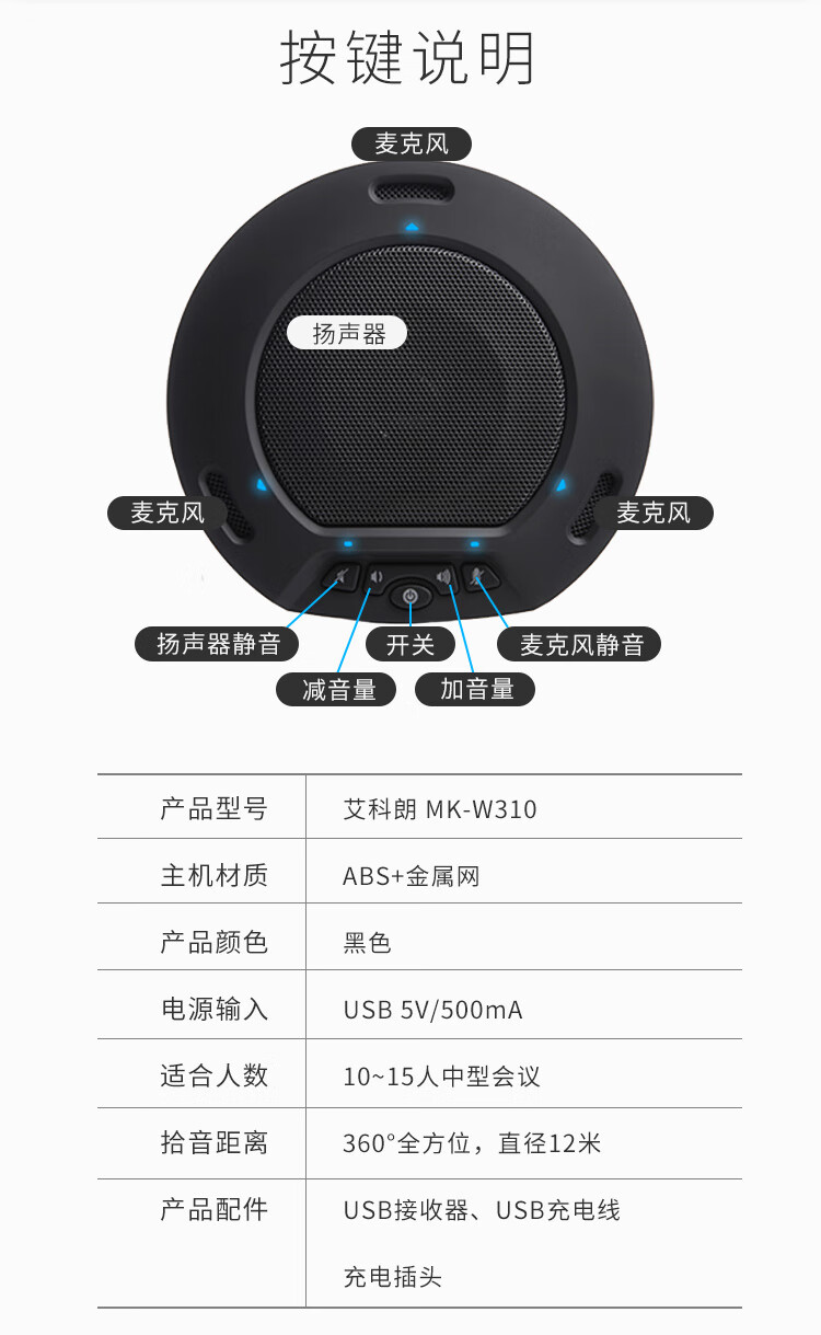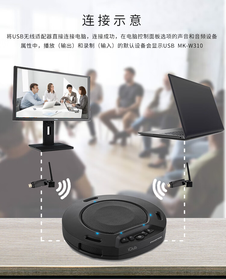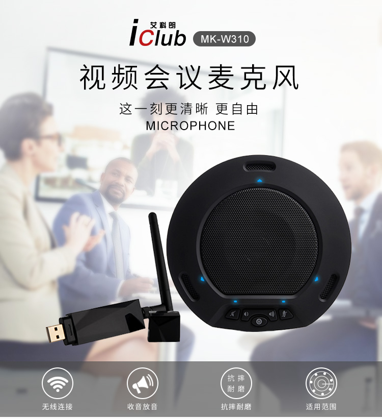 商品名称:☆艾科朗 ICLUB 2.4G无线视频会议全向麦克风 MK-W310 降噪消回音软件视频会议终端设备
