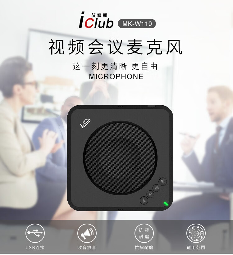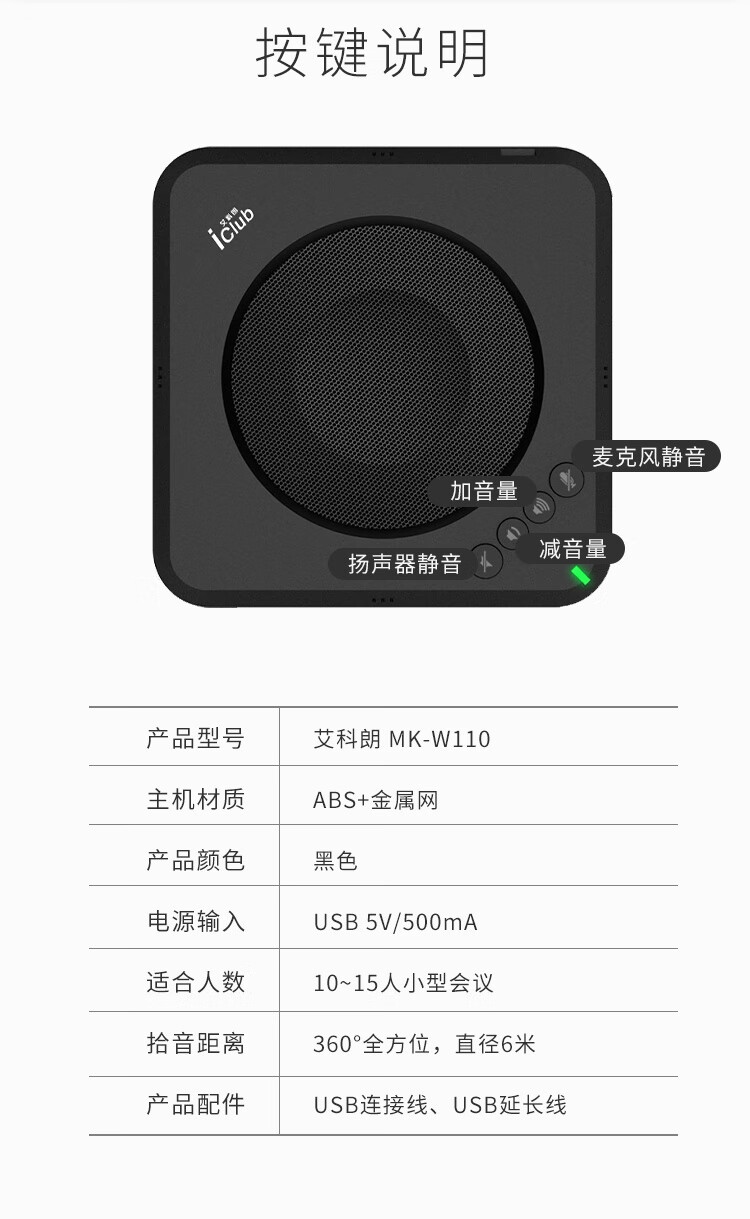 商品名称:☆艾科朗 ICLUB USB视频会议全向麦克风 MK-W110 小型会议高清会议软件系统终端扬声器设备