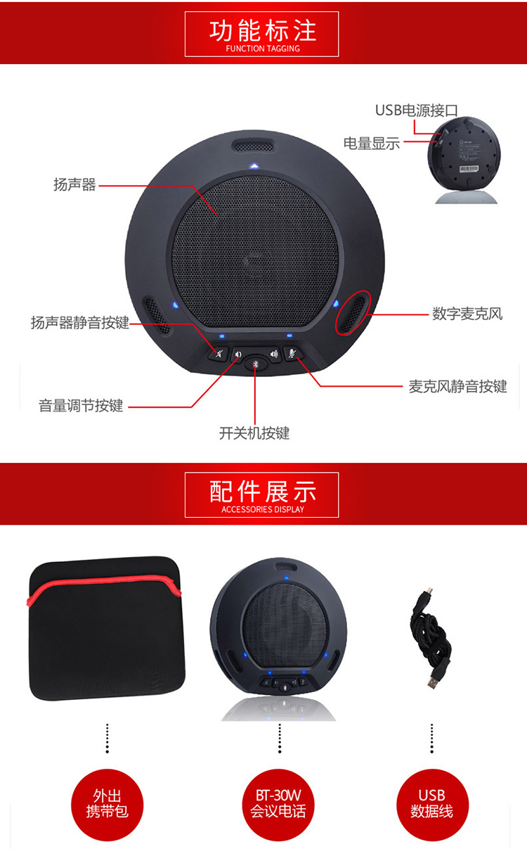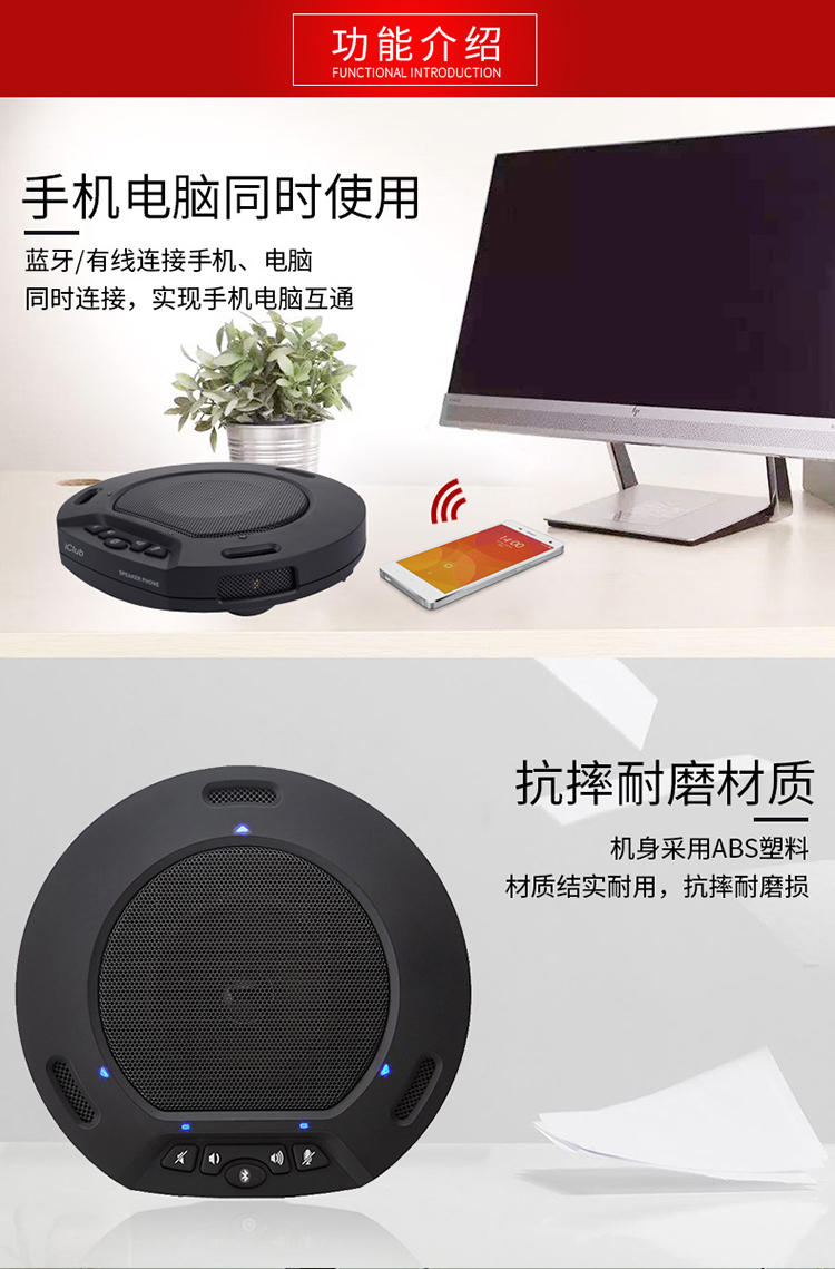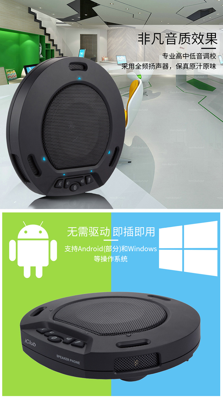 商品名称:☆艾科朗 ICLUB USB视频会议全向麦克风 MK-W215 蓝牙接手机会议软件系统终端扬声器设备