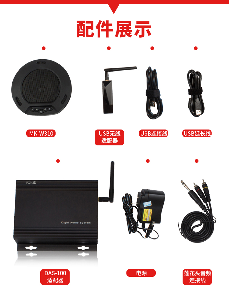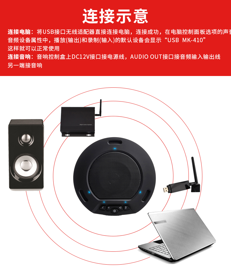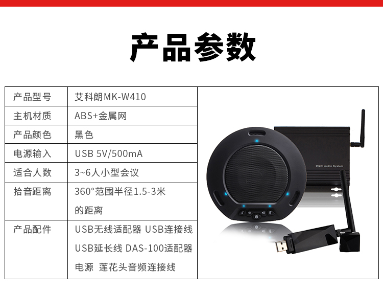 商品名称:☆艾科朗 ICLUB 视频会议全向麦克风 MK-W410 无线接电脑可外接音箱/调音台高清会议软件系统终端扬声器设备