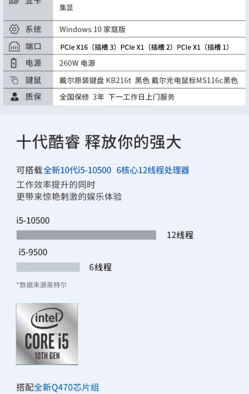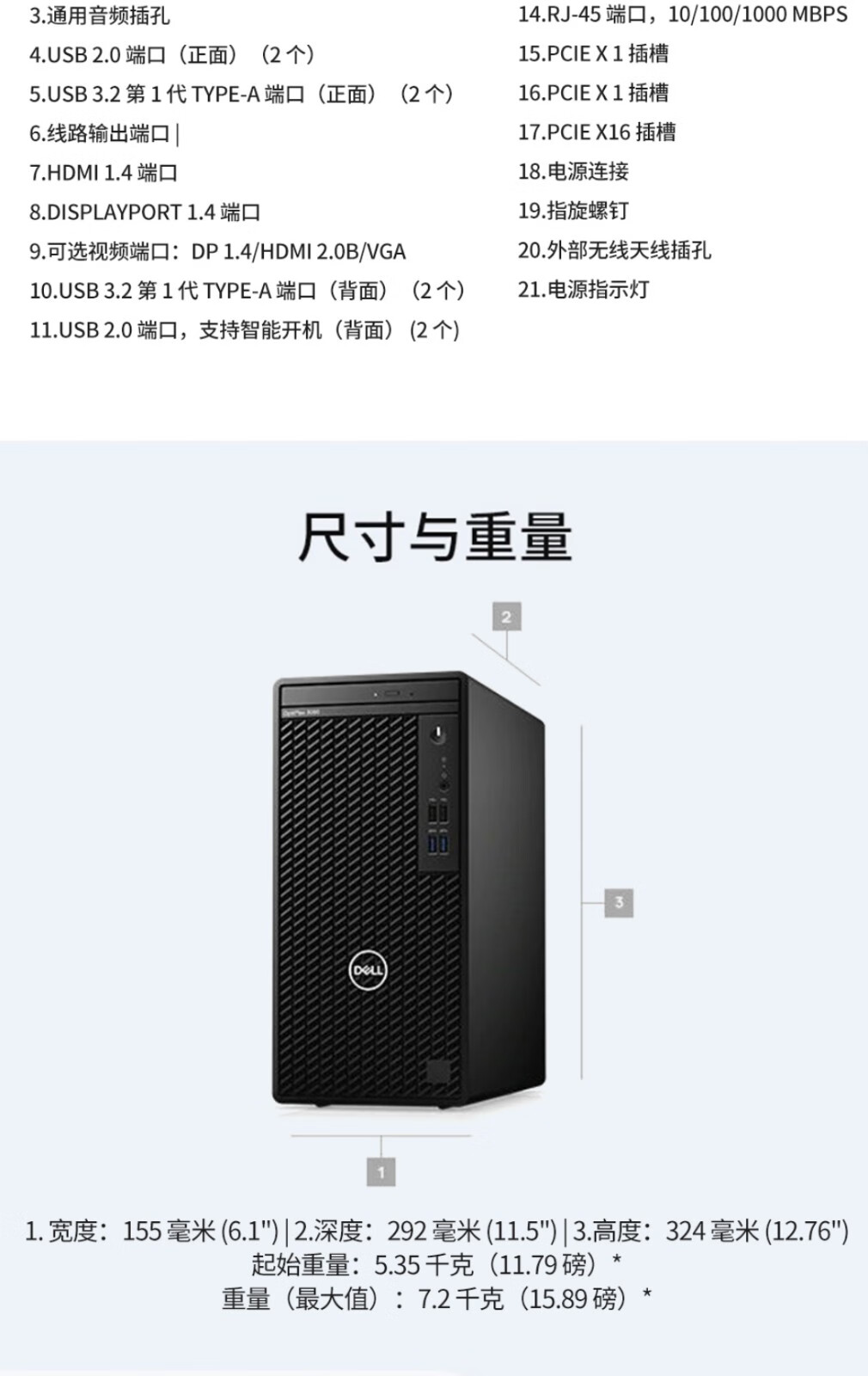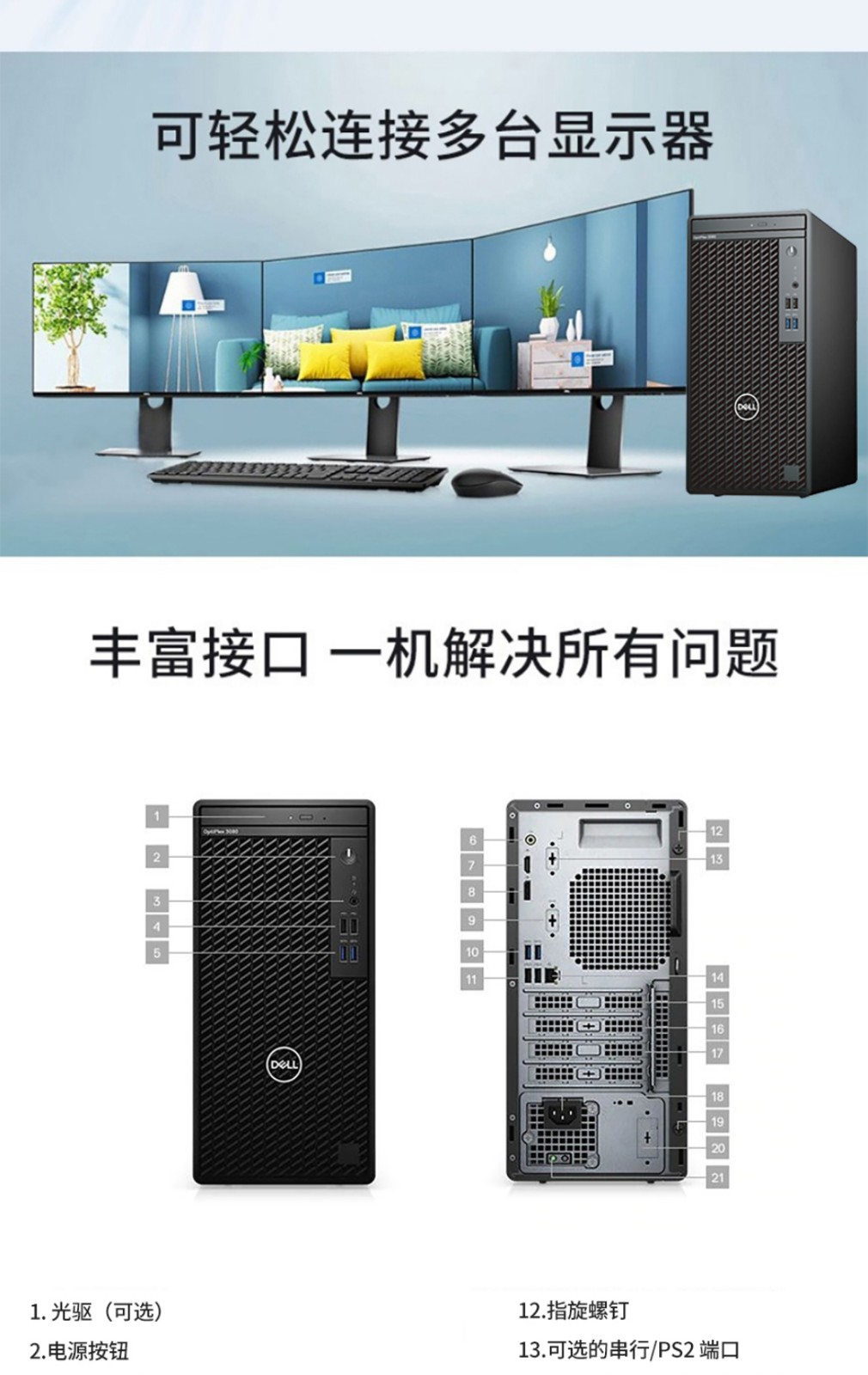 商品名称:☆戴尔(DELL) OPTIPLEX 3080MT (I5-10500/4GB/1TB/集成显卡/DOS或LINUX/仅主机/3年) 台式机