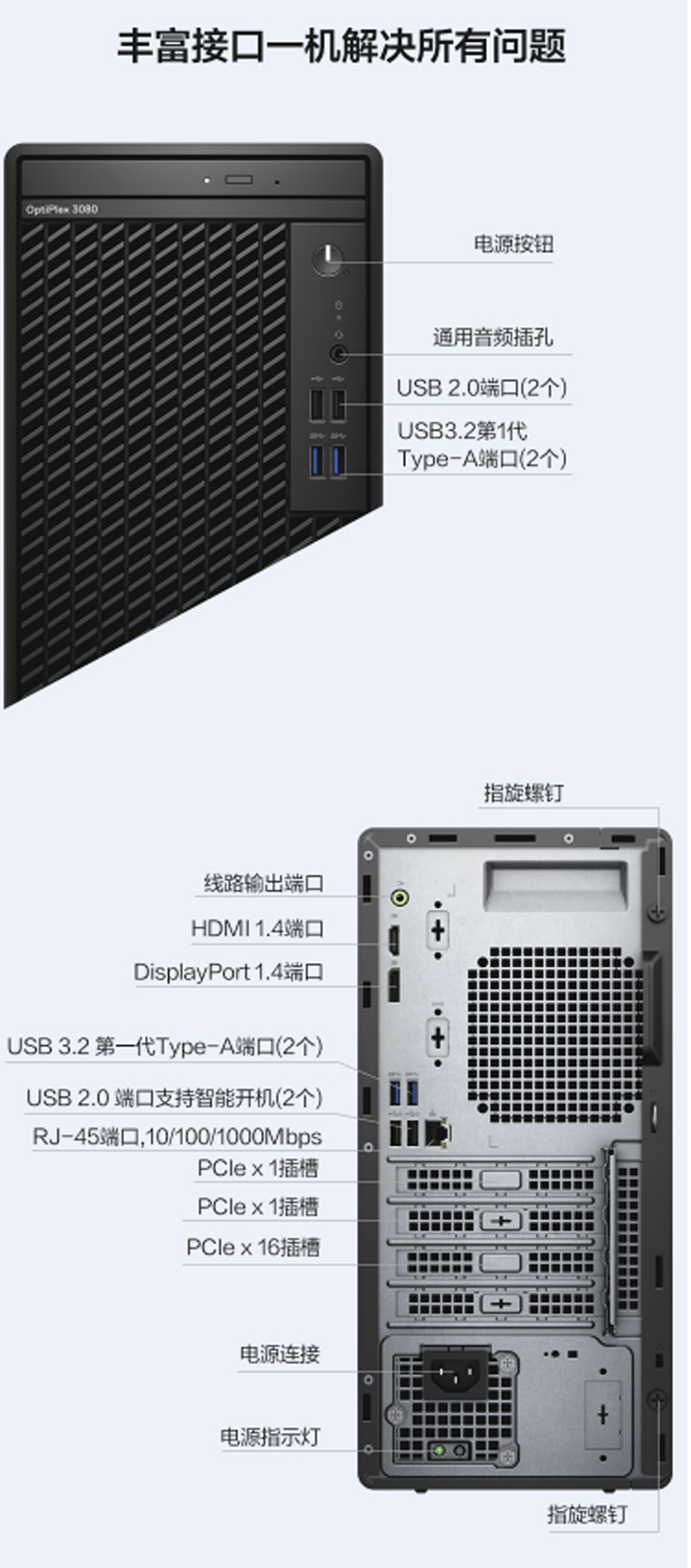 ☆戴尔(DELL) OPTIPLEX 3080MT (I5-10500/8GB/1TB+128GB SSD/集成显卡/WIN7HB/21英寸/5年) 台式机