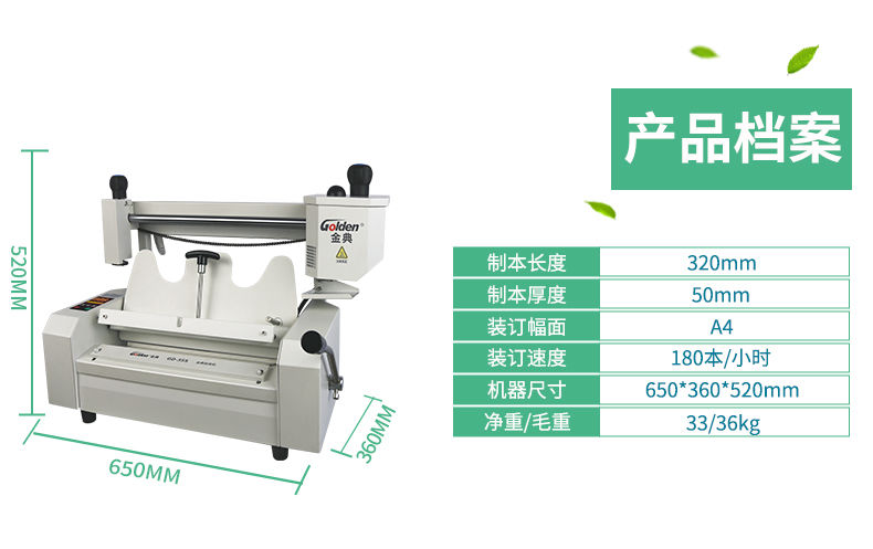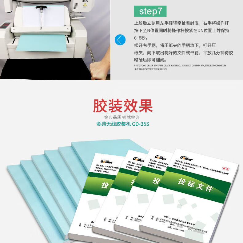 商品名称:☆金典 GOLDEN GD-35S 桌面式无线胶装机