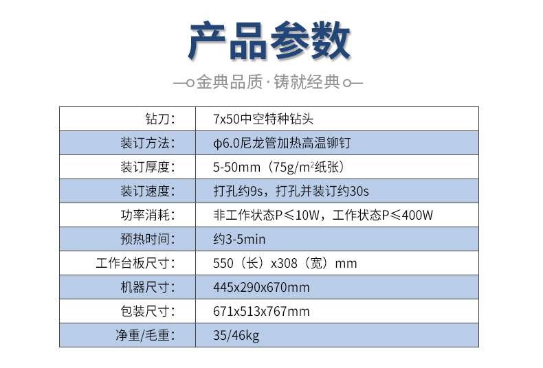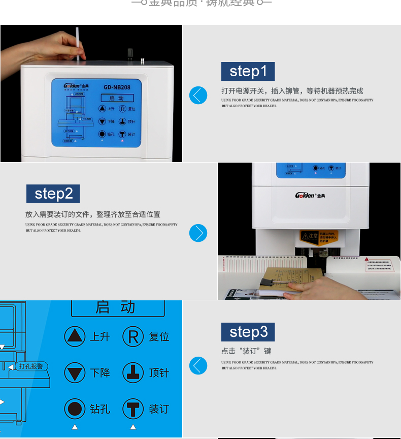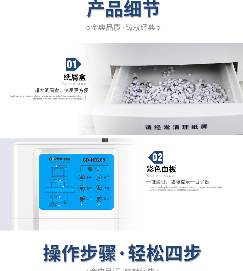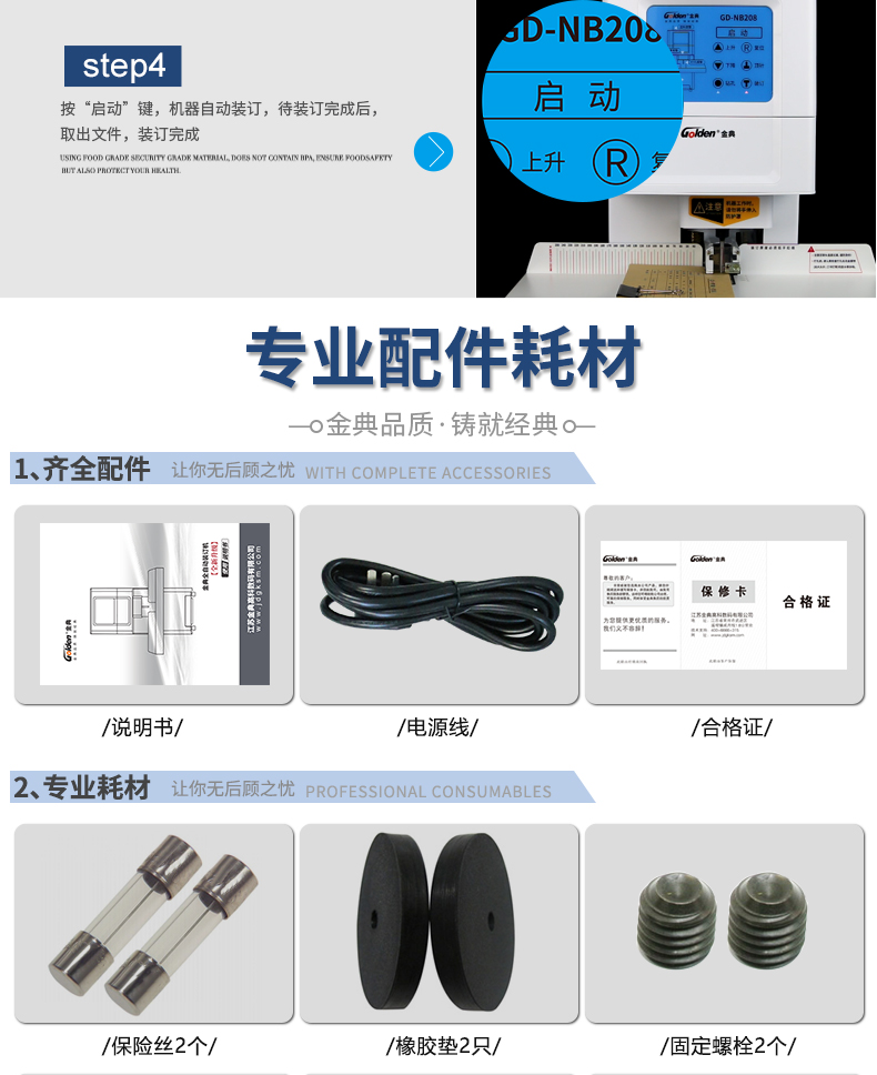 商品名称:☆金典 GOLDEN GD-NB208 装订机财务凭证装订机 全自动打孔装订 无需人工一键装订