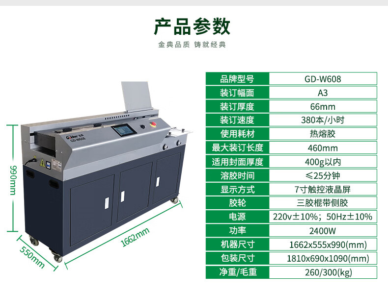 商品名称:☆金典 GOLDEN GD-W608 全自动无线胶装机