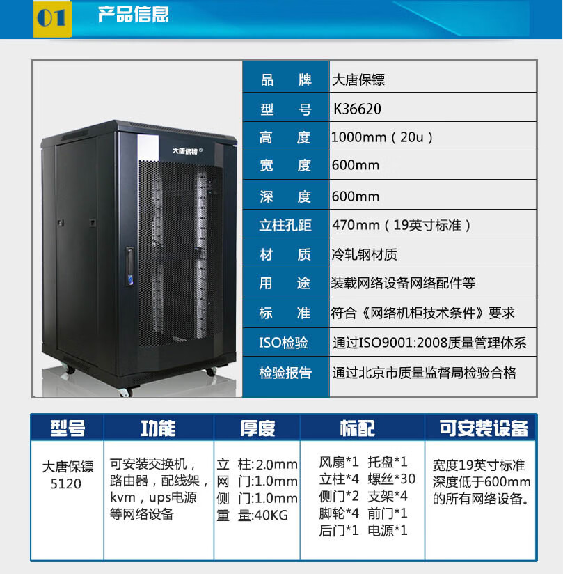 商品名称:☆大唐保镖 K36620 20U网络机柜 1米