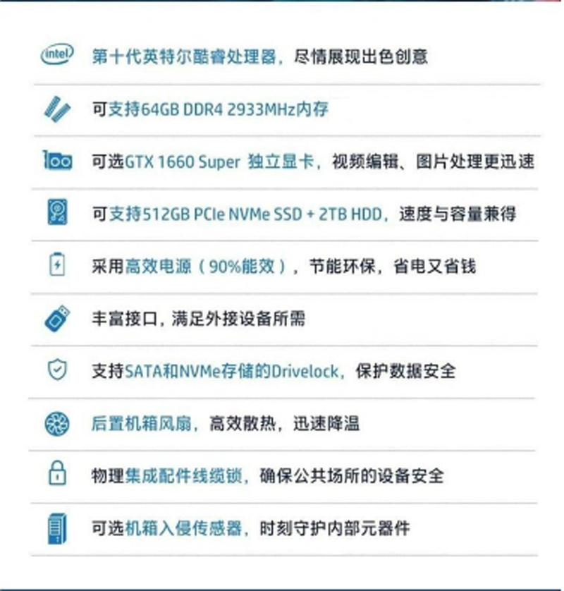 商品名称:☆惠普(HP) PRODESK 288G6 MT (I7-10700/32GB/512GB SSD/4GB独显/WIN10HB/仅主机/3年) 台式机