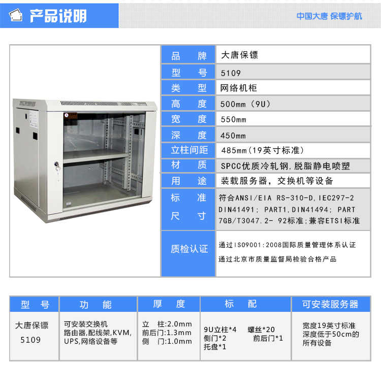 商品名称:☆大唐保镖 5109 加厚9U壁挂小机柜 0.5米 19英寸