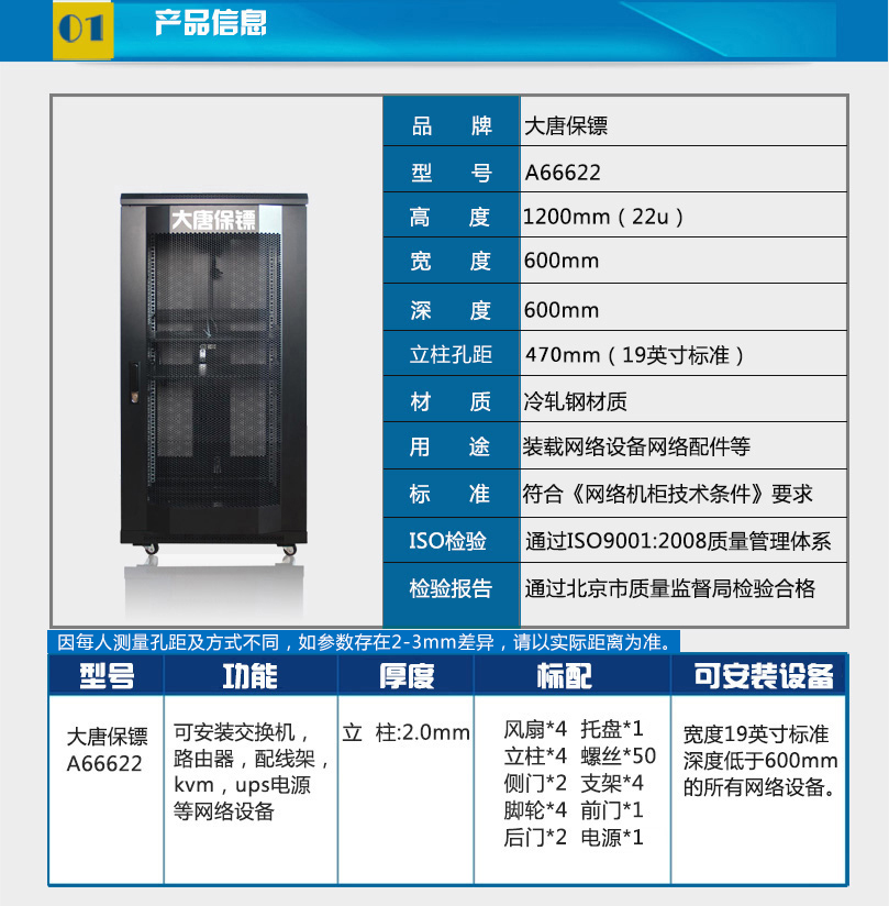 商品名称:☆大唐保镖 A66622 22U服务器机柜