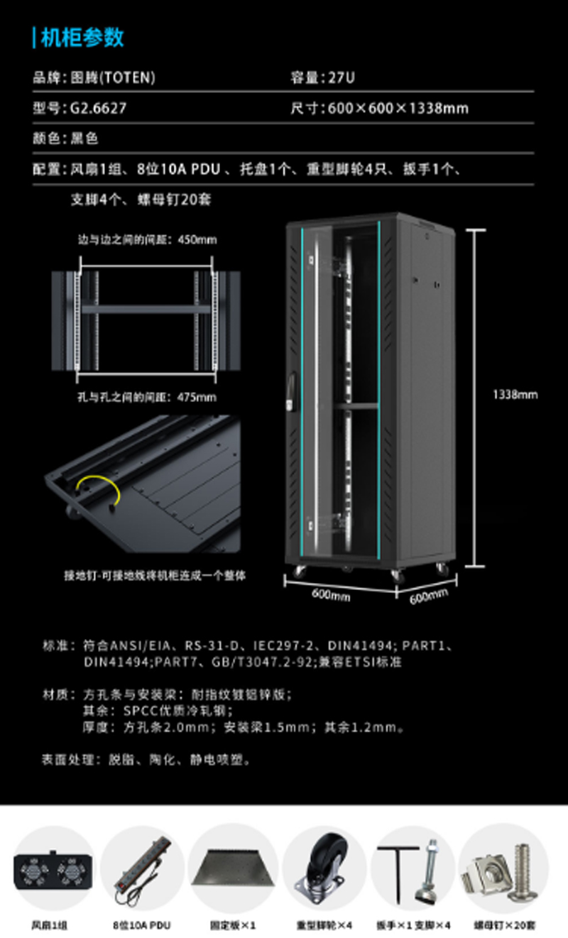 商品名称:☆图腾 TOTEN G2.6627网络机柜标准机柜加厚19英寸1.4米机柜