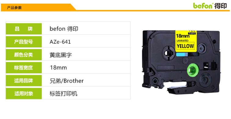 商品名称:☆得印 BEFON 标签机色带18MMAZE-641 黄底黑字 不干胶标签纸