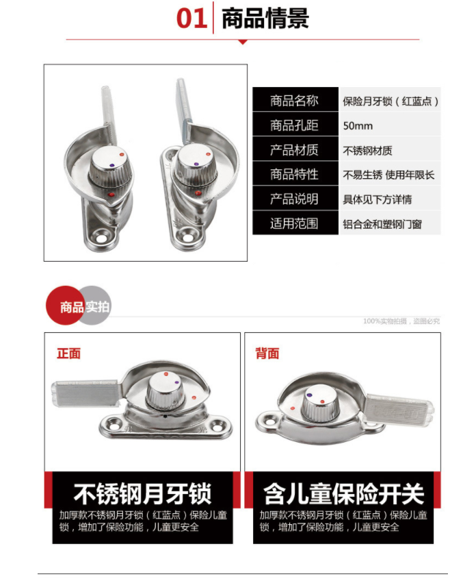 商品名称:雨花泽 不锈钢窗锁勾 移门窗锁月牙锁窗户锁扣玻璃窗户钩锁儿童安全防护锁 左开