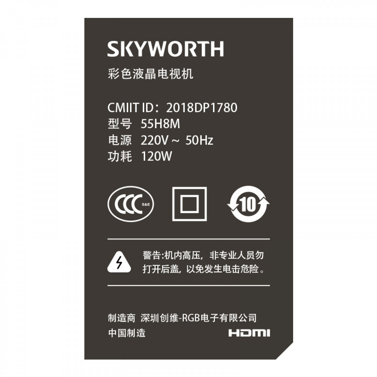 商品名称:Skyworth/创维 55英寸4K高清智能网络液晶平板电视机 55H8M