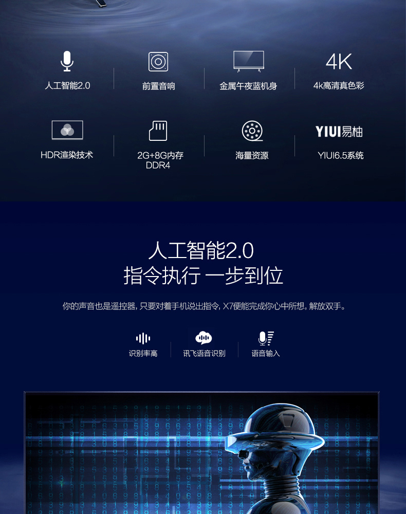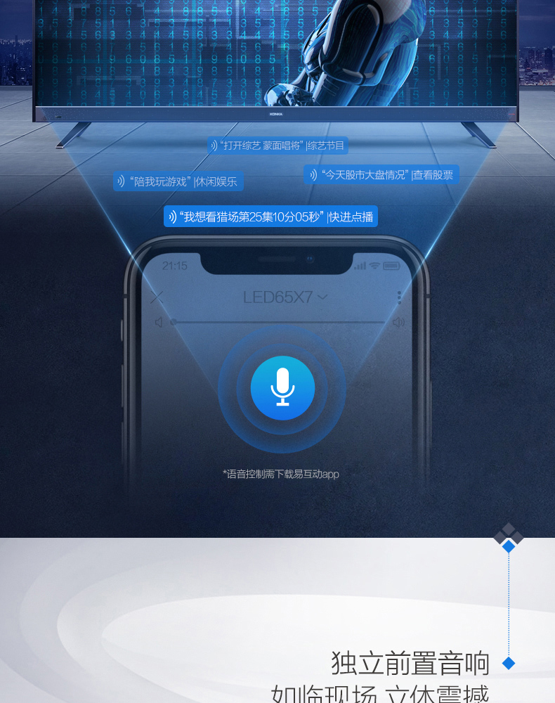商品名称:Konka/康佳 65英寸36核超薄金属智能4K平板led电视机 LED65X7