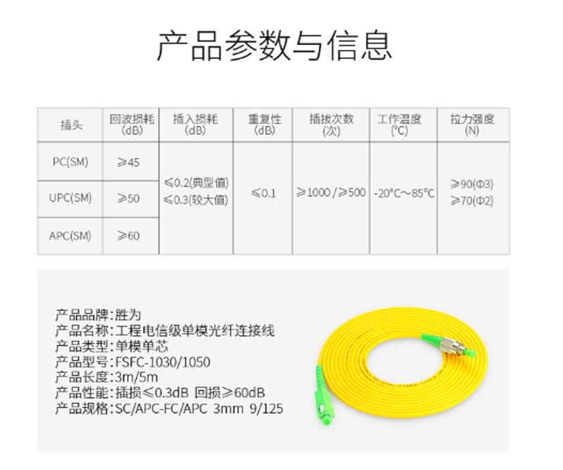 商品名称:☆胜为 SHENGWEI FSFC-1030 工程电信级光纤跳线 SC(APC)-FC(APC)单模单芯 3米