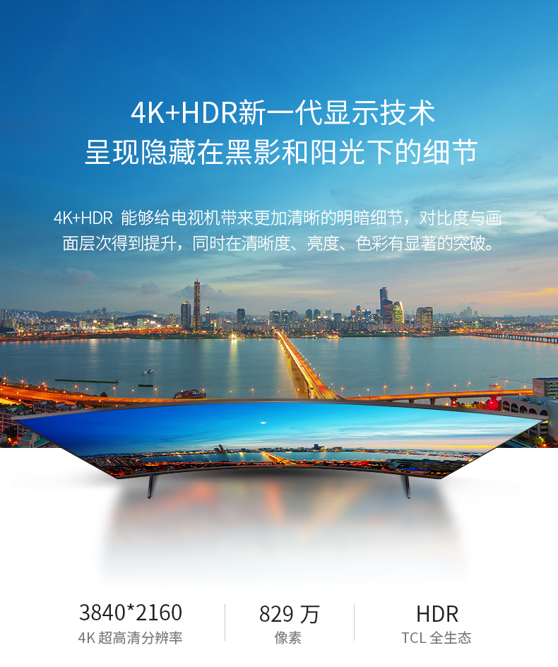 商品名称:TCL 65英寸 曲面4K安卓智能LED液晶电视 65A880C