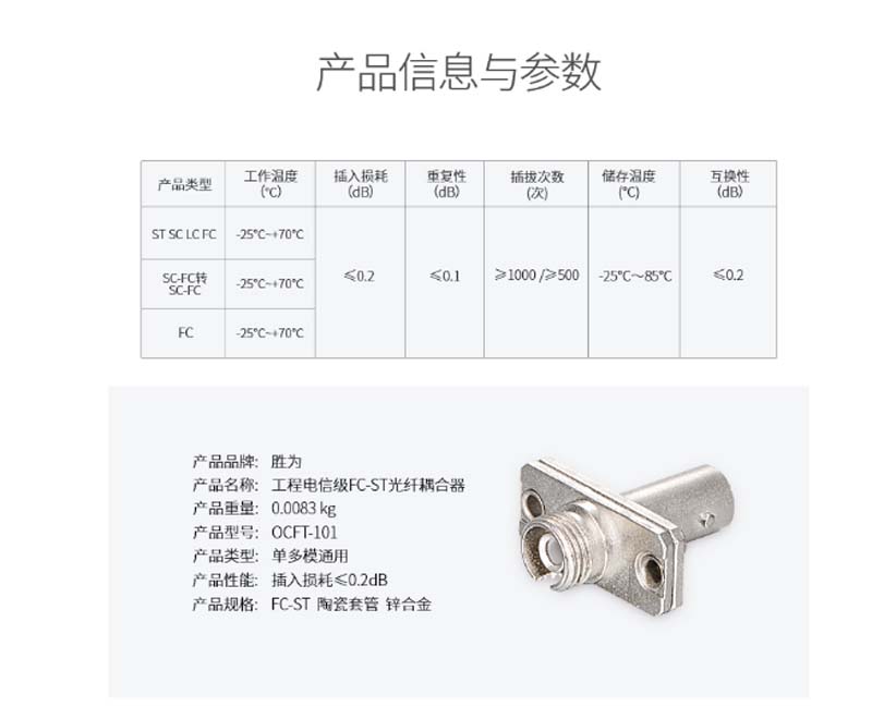 商品名称:☆胜为 SHENGWEI OCFT-101 光纤适配器 工程电信级 光纤耦合器法兰盘 FC-ST 光纤网络跳线延长对接头