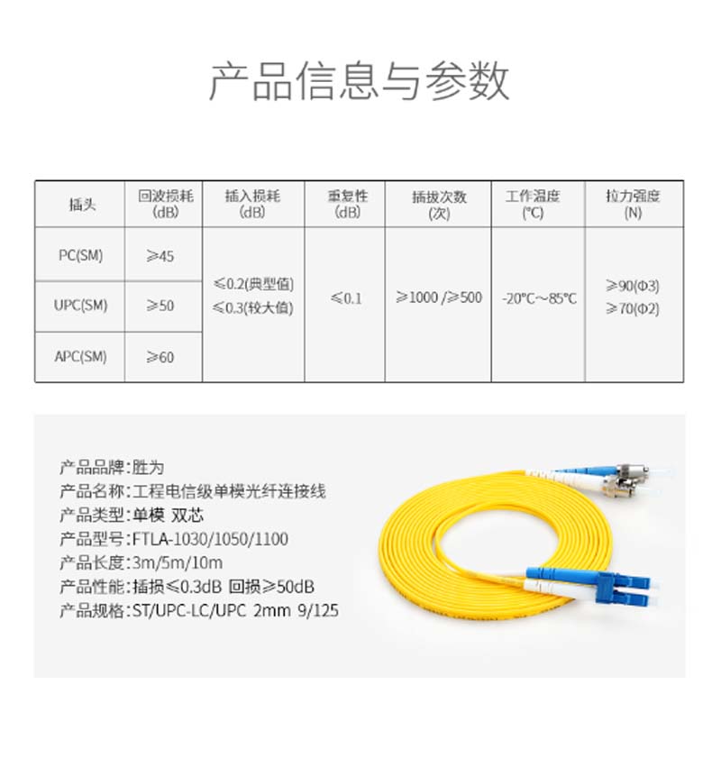 商品名称:☆胜为 SHENGWEI FTLA-1050 工程电信级光纤跳线 ST(UPC)-LC(UPC)单模双芯 5米