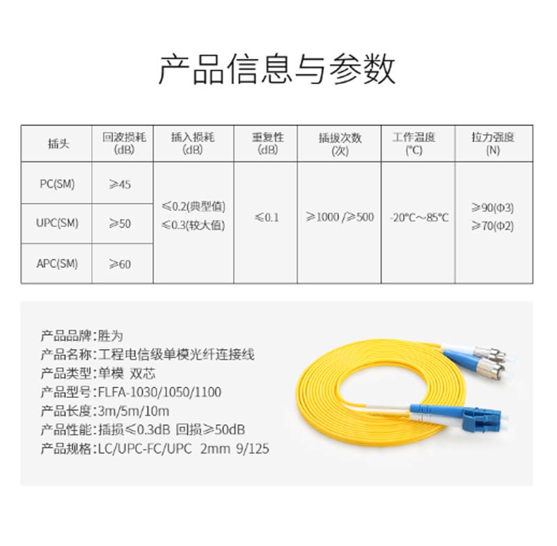 商品名称:☆胜为 SHENGWEI FLFA-1050 工程电信级光纤跳线 LC(UPC)-FC(UPC)单模双芯 5米