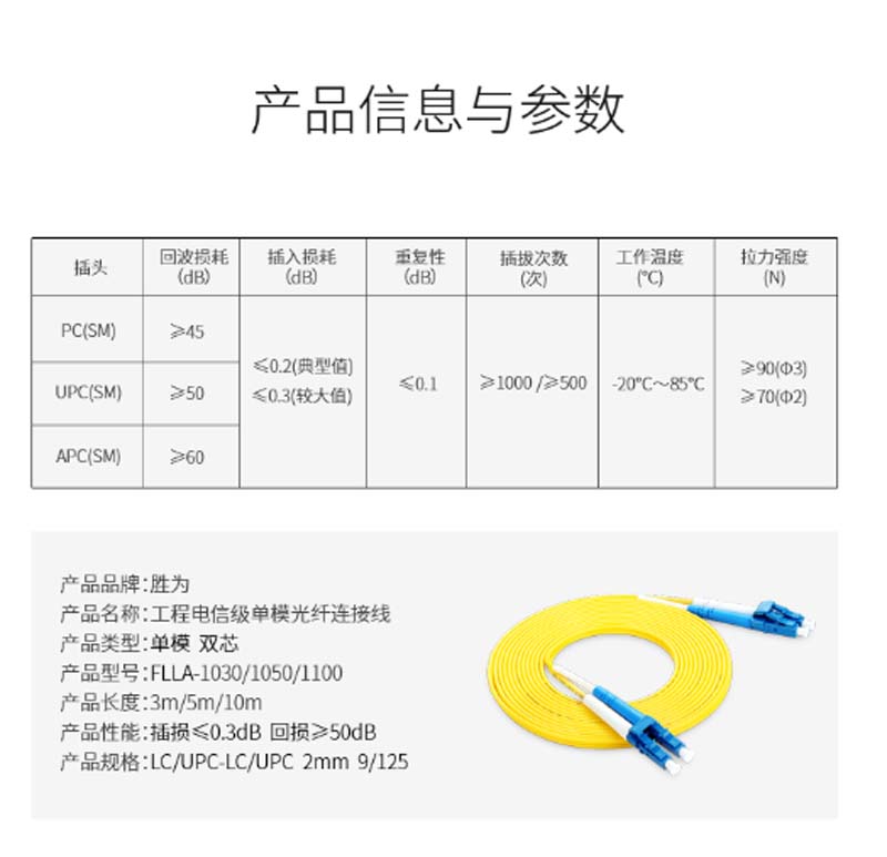 商品名称:☆胜为 SHENGWEI FLLA-1050 工程电信级光纤跳线 LC(UPC)-LC(UPC)单模双芯 5米